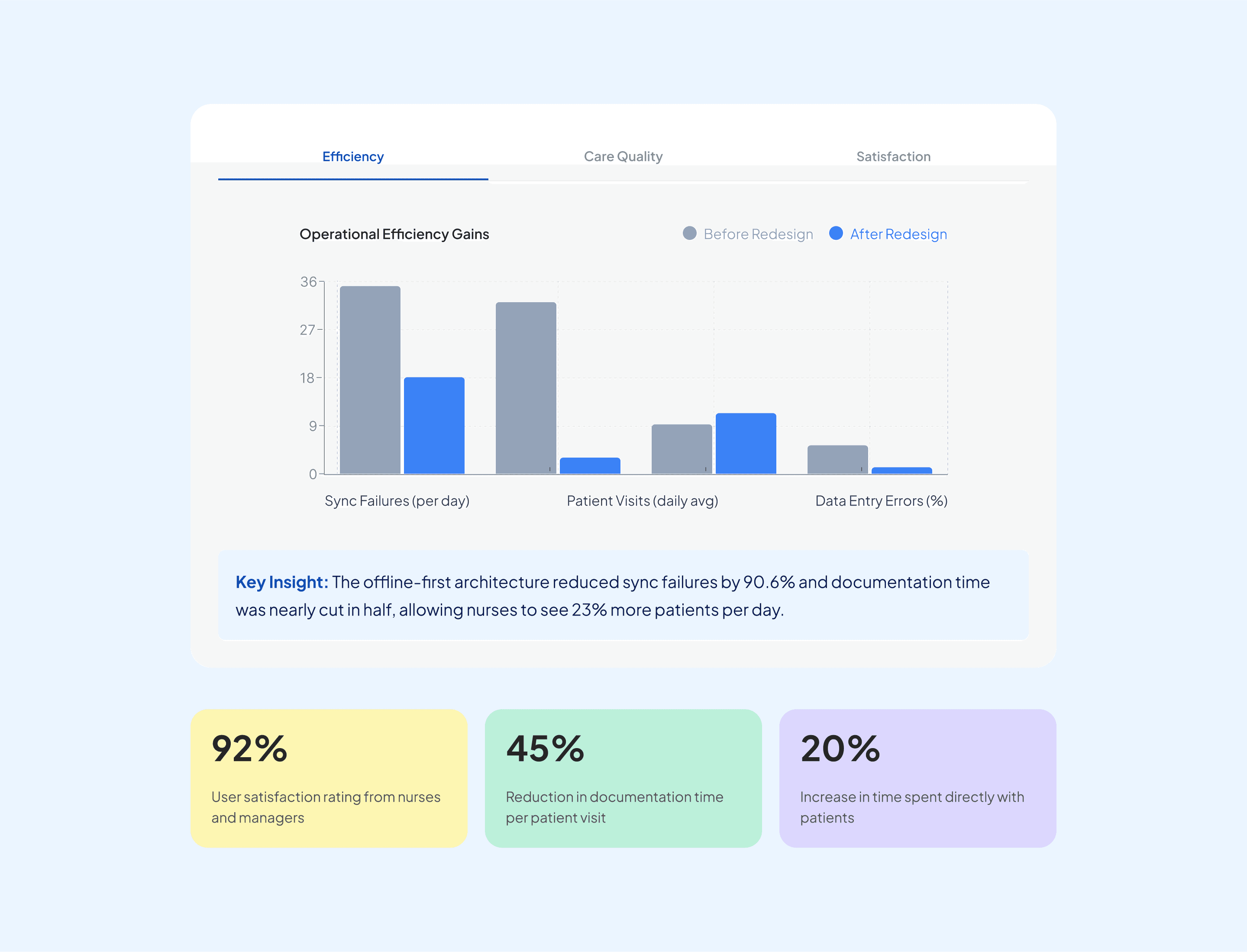 Our process focused on transforming a legacy system into an intuitive, offline-capable platform that serves diverse healthcare roles.
